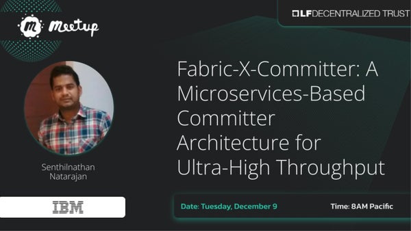 Online event***Please Use Source Link Below to Confirm Event Details*** Fabric-X is a digital asset-specific implementation of Hyperledger Fabric. Join us for a series on meetups that go into detail about what Fabric-X is and how you can use it. Fabric-X-Committer introduces a high-performance and resilient architecture that addresses the scalability limitations of the traditional monolithic peer in Fabric. By decomposing the commit process into independently scalable microservices—including a Coordinator, Signature Verifiers, and Validator-Committers and leveraging a sharded distributed database, the system achieves significant parallelism, enabling substantial scalability and performance gains. A key innovation is the use of a transaction dependency graph, which allows safe, parallel validation of transactions across multiple blocks. Combined with a pipelined execution flow, this design eliminates sequential bottlenecks and unlocks ultra-high throughput. Performance evaluations show that Fabric-X-Committer can process over 200,000 transactions per second, marking a major leap in scalability for enterprise-grade blockchain systems. In this meetup, we will provide an overview of the Fabric-X-Committer architecture and share performance evaluation results that highlight its scalability and efficiency. Original Event: Fabric-X-Committer: A Microservices-Based Architecture for Ultra-High Throughput